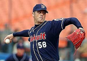 Seatle Mariners (2000); bigleaguers.yahoo.com/mlbpa/players/6458/careerseattlepi.nwsource.com/baseball/meet15.shtmlespn.go.com/mlb/profiles/splits/3year/pitching/6458.htmlwww.yakult-swallows.co.jp/