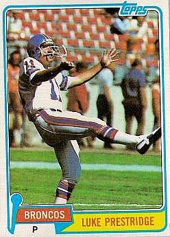 BiographyLuke Prestridge was a punter with a 6-year career in the National Football League. He was selected to the Pro Bowl after the 1982 season as a member of the Denver Broncos.